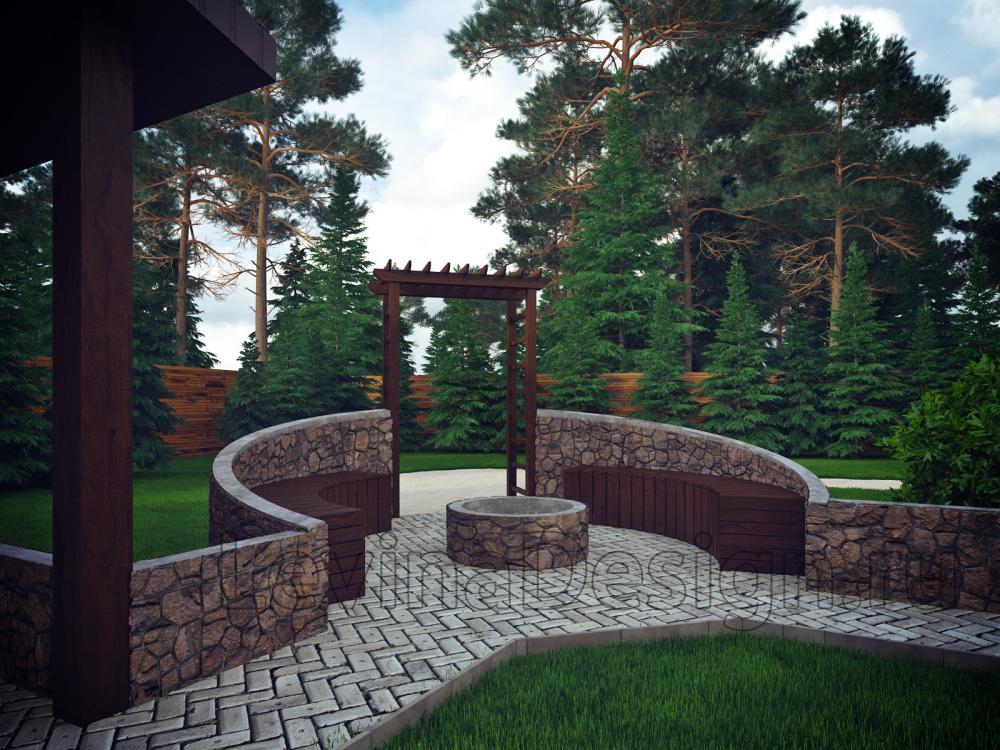 На начальном этапе работы над планировкой участка, дом был уже построен и все остальные постройки необходимо было разместить на свободной территории. А разместить нужно было не мало: баню, гараж, беседку с барбекю и зону отдыха с костром! Также хотелось чтобы были открытые участки с газонами и цветами, дорожки, деревья. На мой взгляд все удалось, а довольные заказчики тому подтверждение!